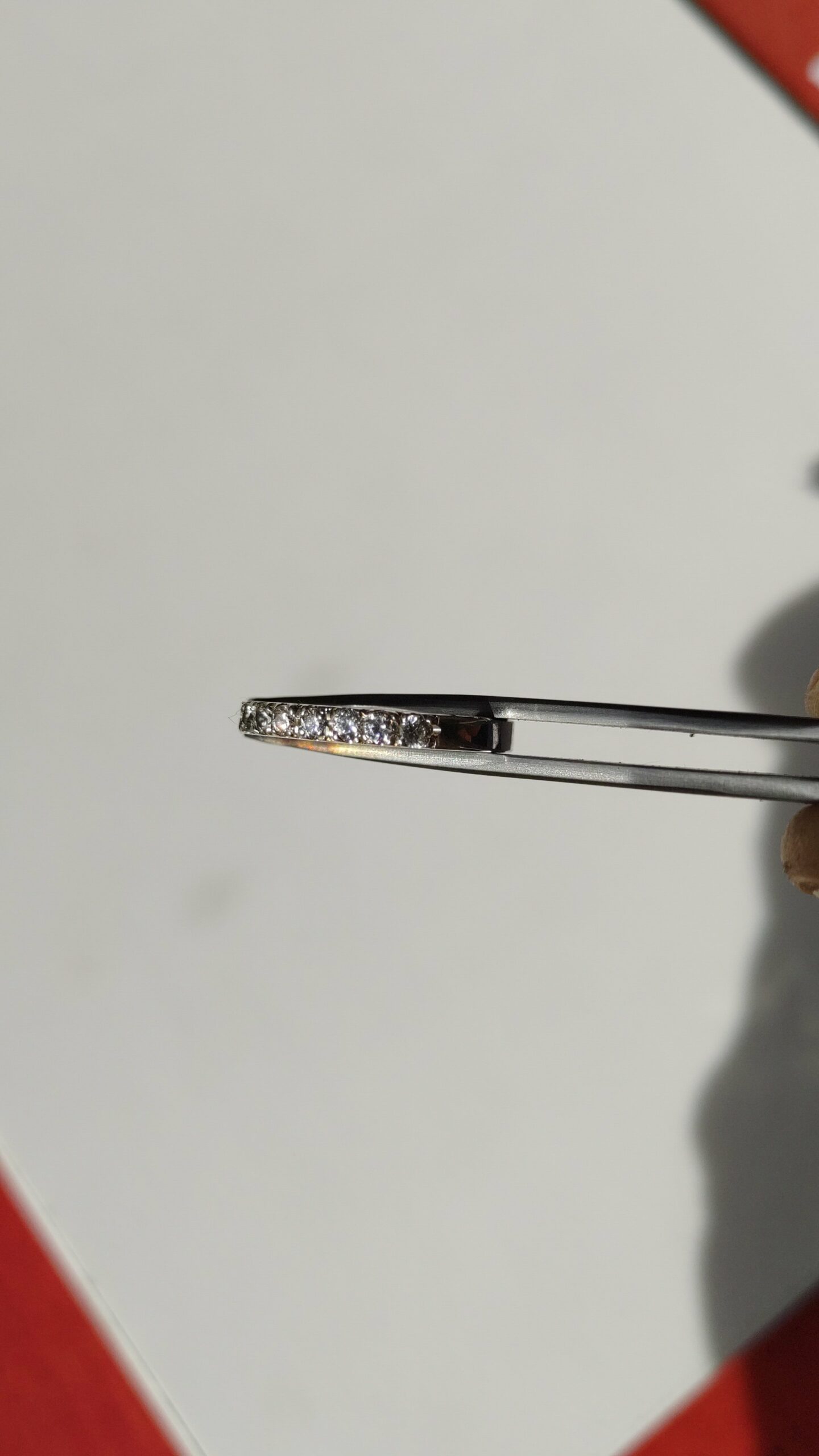 J’ai réalisé cette bague pour expérimenter la mise en pierre et le sertissage. Un anneau en fil carré avec 7 CZ de 2.5mm.